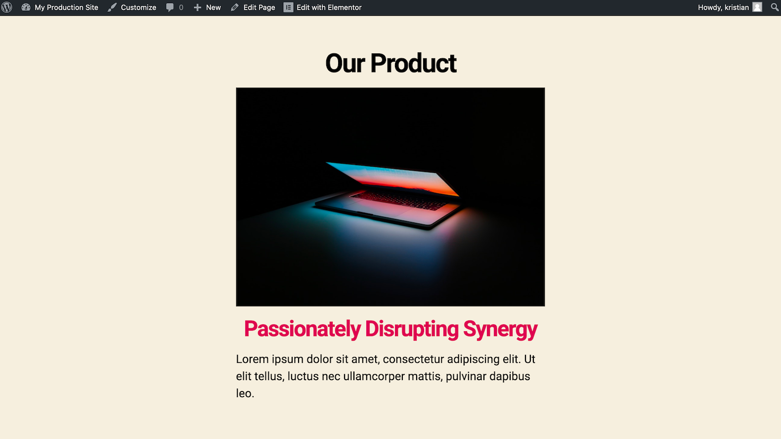 That's it! Our changes are now pushed to the production site! (In reality, the push changed the name of the site as well. I went in and changed it after the push to make it clear which of the sites we're on at the moment. With some coding, you can get around this).