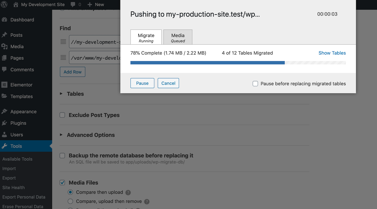 A common problem when moving a WordPress site is that absolute URLs and paths are saved in the database, serialized in such a way that simply searching and replacing them won't work. WP Migrate DB Pro handles this as well, letting us specify the new path and URL of the site, and even auto-populating the fields.
