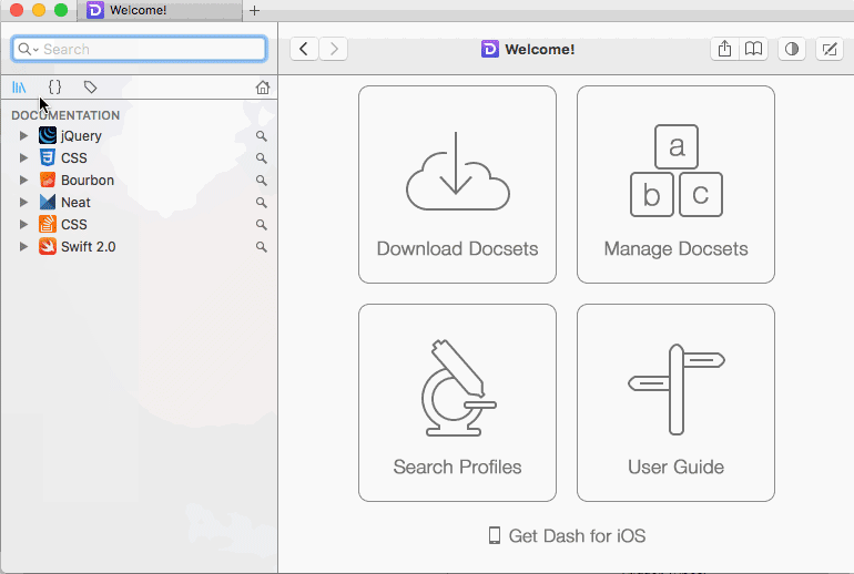 Many of us are doing different kinds of development work: let's say you're working with iOS on some projects and with web technologies on others. The documentation sources for these two fields are completely different. With Search Profiles, Dash acknowledges this and provides an elegant way to have exactly the docs at hand that you need at a certain time.