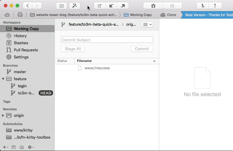 Apart from the Blame and File History views, we have reworked countless areas in the new Tower. You will stumble across many improvements (big and small) as you work with the app.