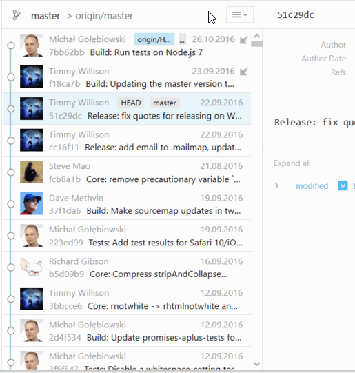 Tower offers various styles for the commit listing. You can have a "tree graph" shown and decide if you want to have items displayed in small or large sizes.