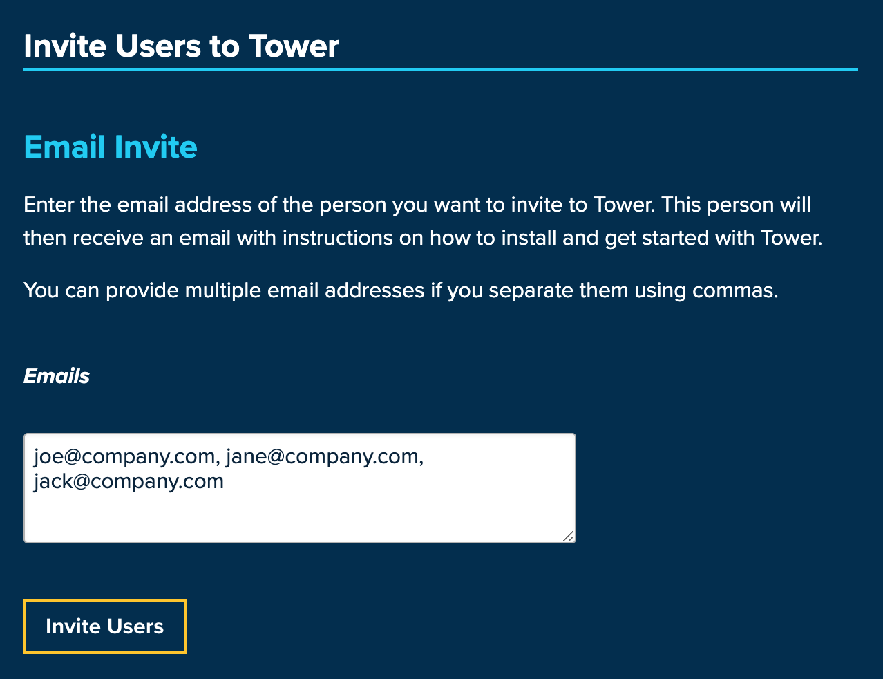 - ...send instructions about installing & getting started with Tower to the person's email address.