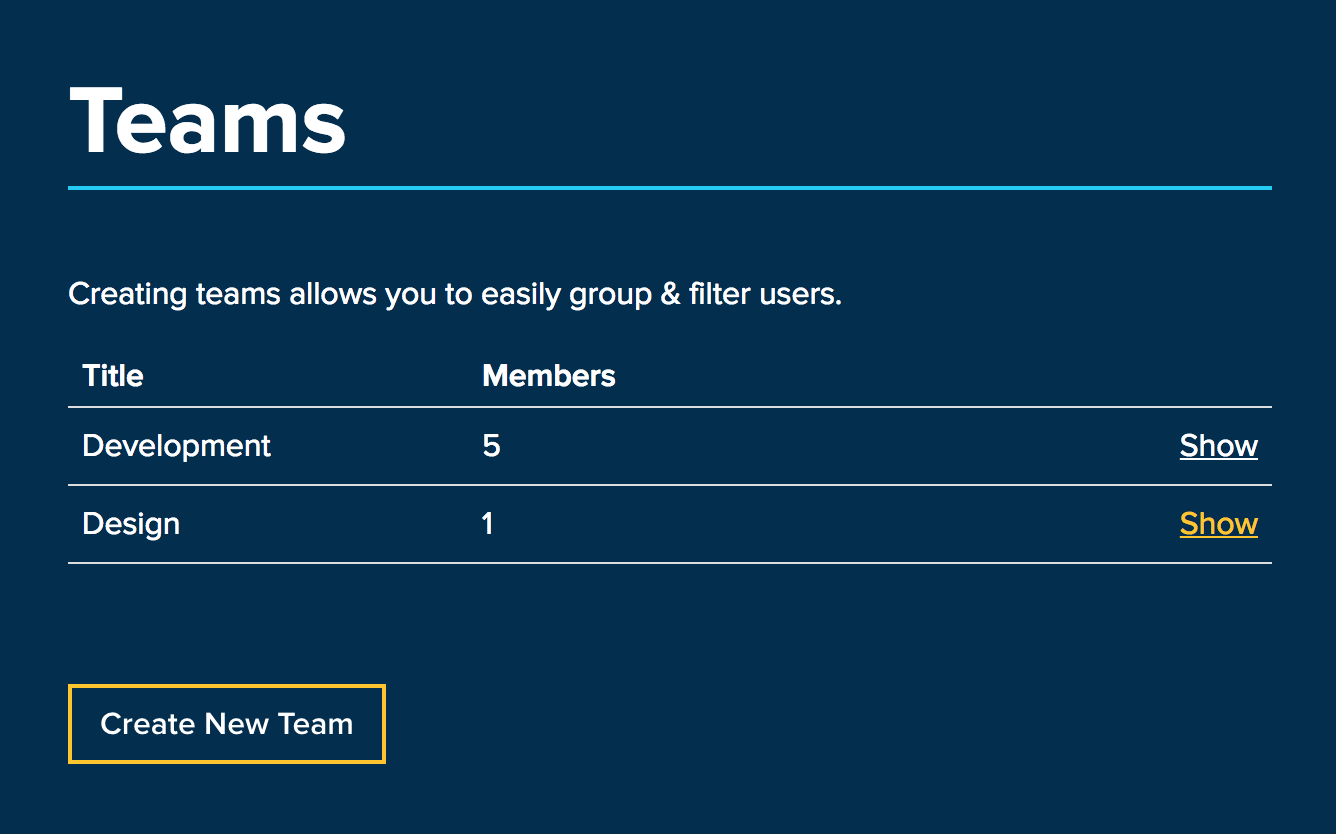 Teams provide an easy way to organize your users into groups.