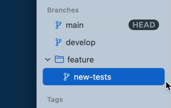 - drag the branch in the sidebar and drop it onto your current HEAD branch item