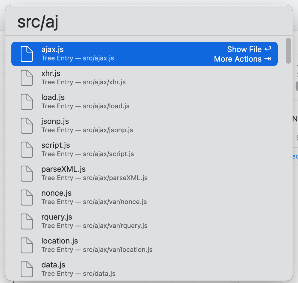 Then, simply start typing the file's path; Tower will help you by automatically suggesting matching items. Once your file is among the search results, select it and move to the "More Actions" view by hitting the Tab key. Then, you'll find an option to .