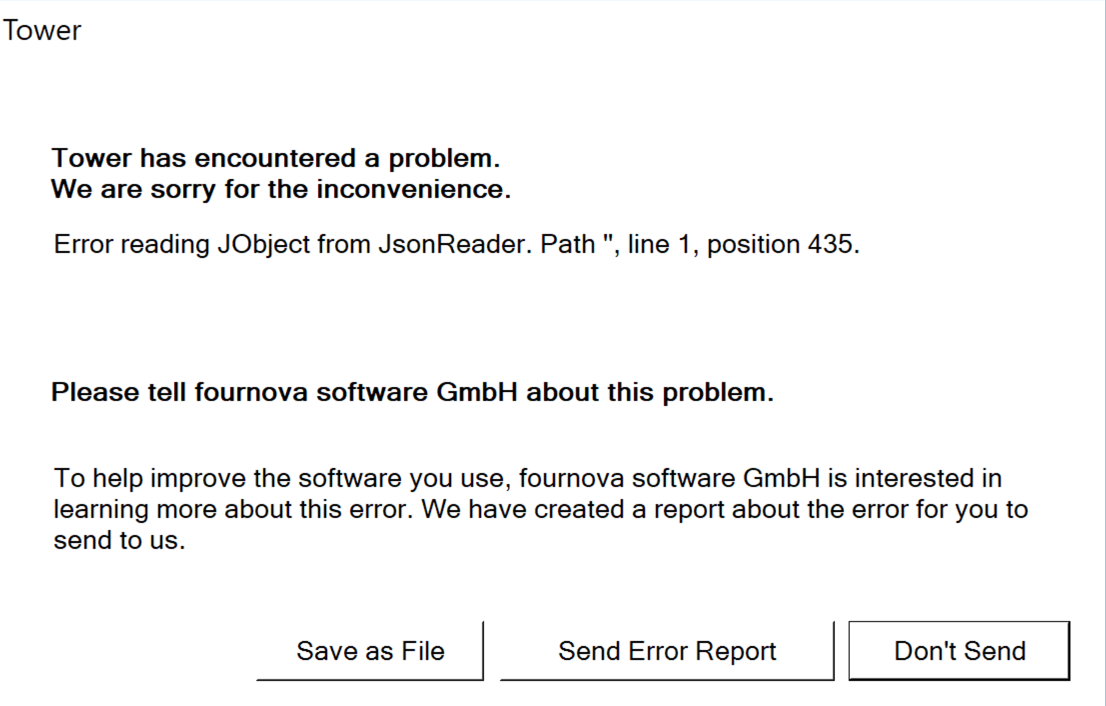 When Tower crashes (i.e. is unexpectedly terminated), please send us the corresponding crash report: