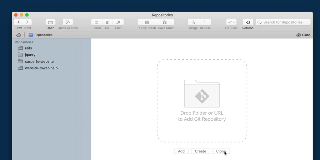 You can search for a public repository on GitHub directly within the dialog: simply start typing a non-URL string and have Tower search for public repositories on github.com.