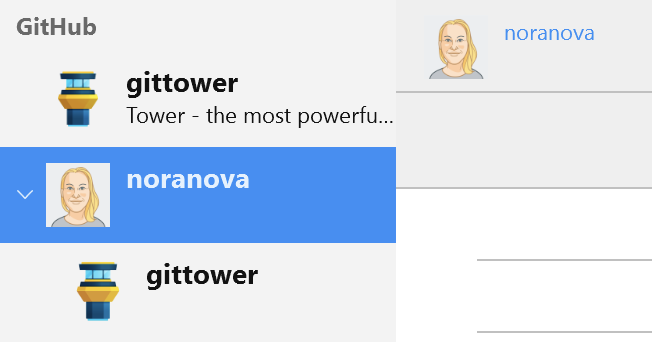 If so, these will automatically be added to the list of available service accounts in Tower's sidebar: they are available as sub-items to the respective personal account. Click the disclosure triangle button on the left to expand them in the sidebar.