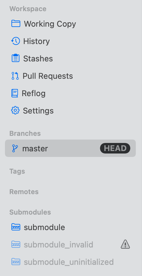 Tower's sidebar lists all of your project's Submodules.