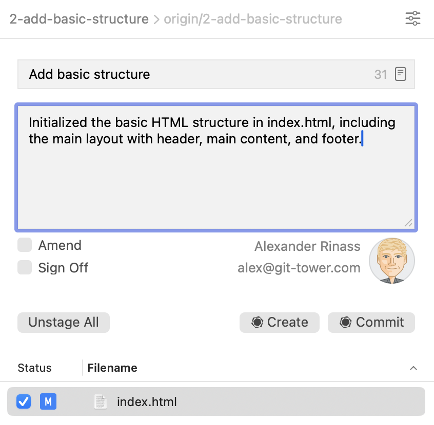 In Graphite terminology, "modifying" a commit means amending the last commit on a branch. This is particularly useful when you need to make small adjustments to your most recent changes: