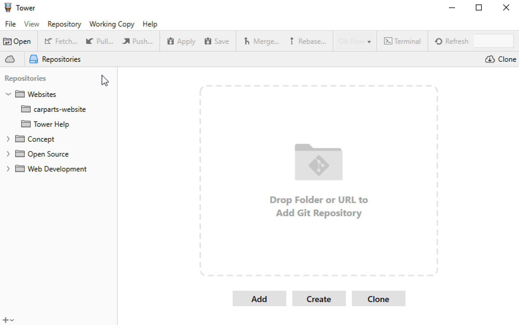The Tower Git client allows you to manage all of your remote repositories (on GitHub, GitLab, Bitbucket, Azure DevOps and more) right from your desktop. Once you've connect your accounts, cloning and creating remote repositories is just a single click away: