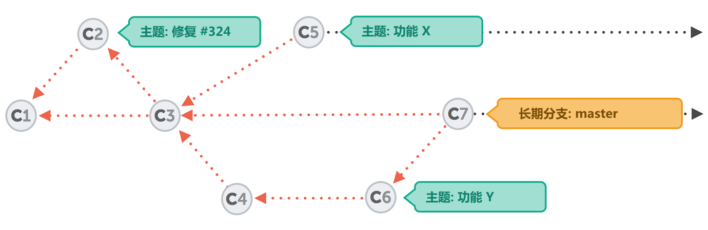 - 它们都只有非常短暂的生命周期。通常情况下,这个生命周期只维持到这个开发主题的结束之后(例如当错误被修复,新功能被完成……),这个分支的改动就会被整合到项目的大环境中去,并且这个分支也会被随之删除掉。