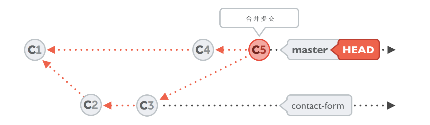 来让我们把 “contact-form” 分支的改动合并到 “master” 中去: