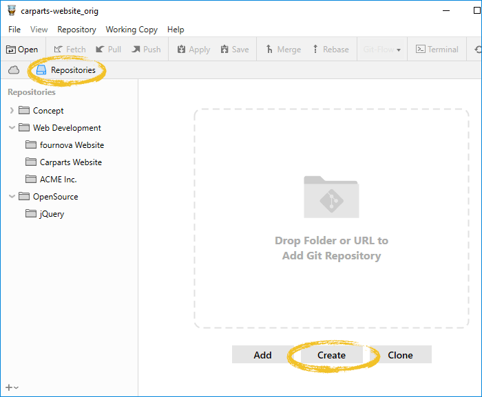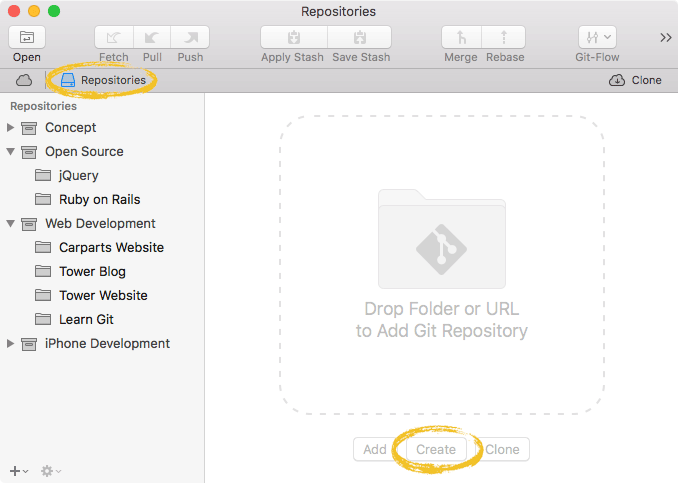 You'll see that our new repository was added in Tower's sidebar. Open the repository for working by double-clicking it.
