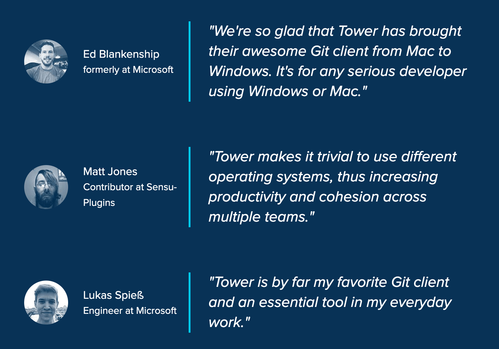 As the makers of Tower, the best Git client for Mac and Windows, we help over 100,000 users in companies like Apple, Google, Amazon, Twitter, and Ebay get the most out of Git.