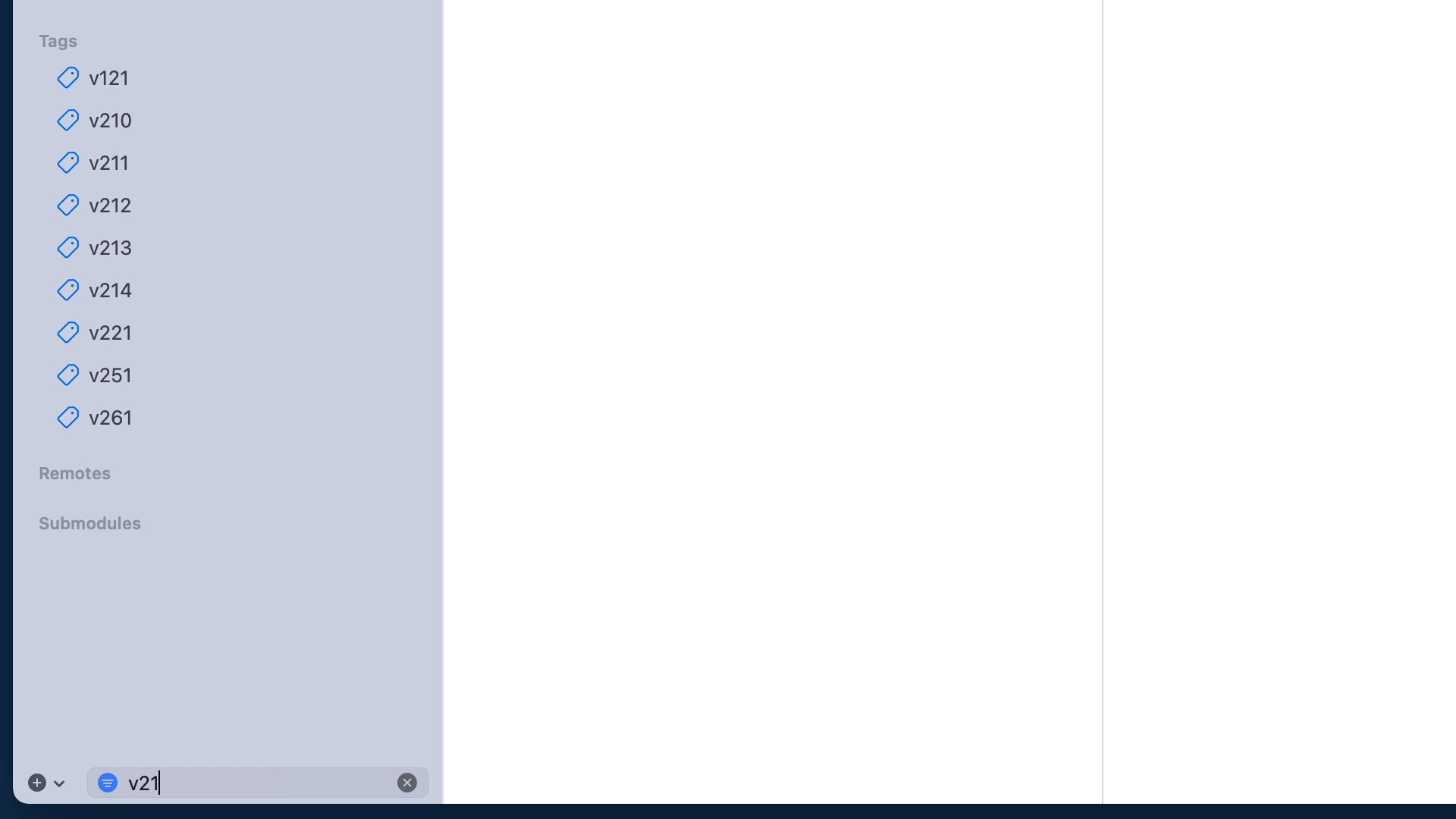 Use the input field at the bottom of the sidebar to quickly filter branches, tags, and submodules as you type.