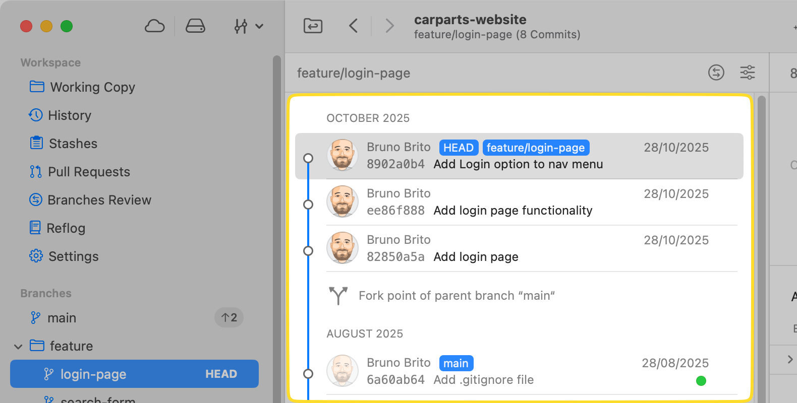 We've also added a new "Fork Point" feature, allowing you to easily see which commits were introduced by a branch relative to its parent branch.